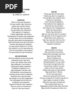 Magpakabuhay kayo sa mundo iwasan ang kasalanan tulad ng pagsisinungaling kabastosan kung mag post mga masamang salita dito. Sukat---4 na saknong ---4 na taludtod bawat saknong ----8 pantig bawat taludtod. Magkasintunog ang mga huling pantig sa bawat taludtod at may tiyak na bilang ang mga pantig2Malayang Taludturan.